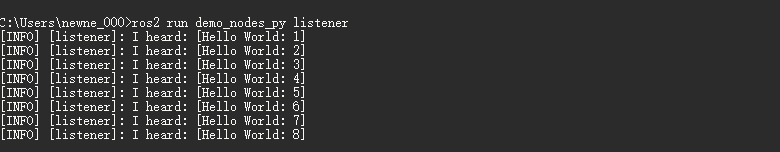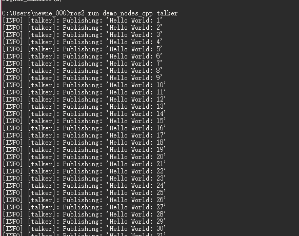 打开一个命令行程序,按照上面的说明设置好ROS2的环境。然后执行一个talker程序
